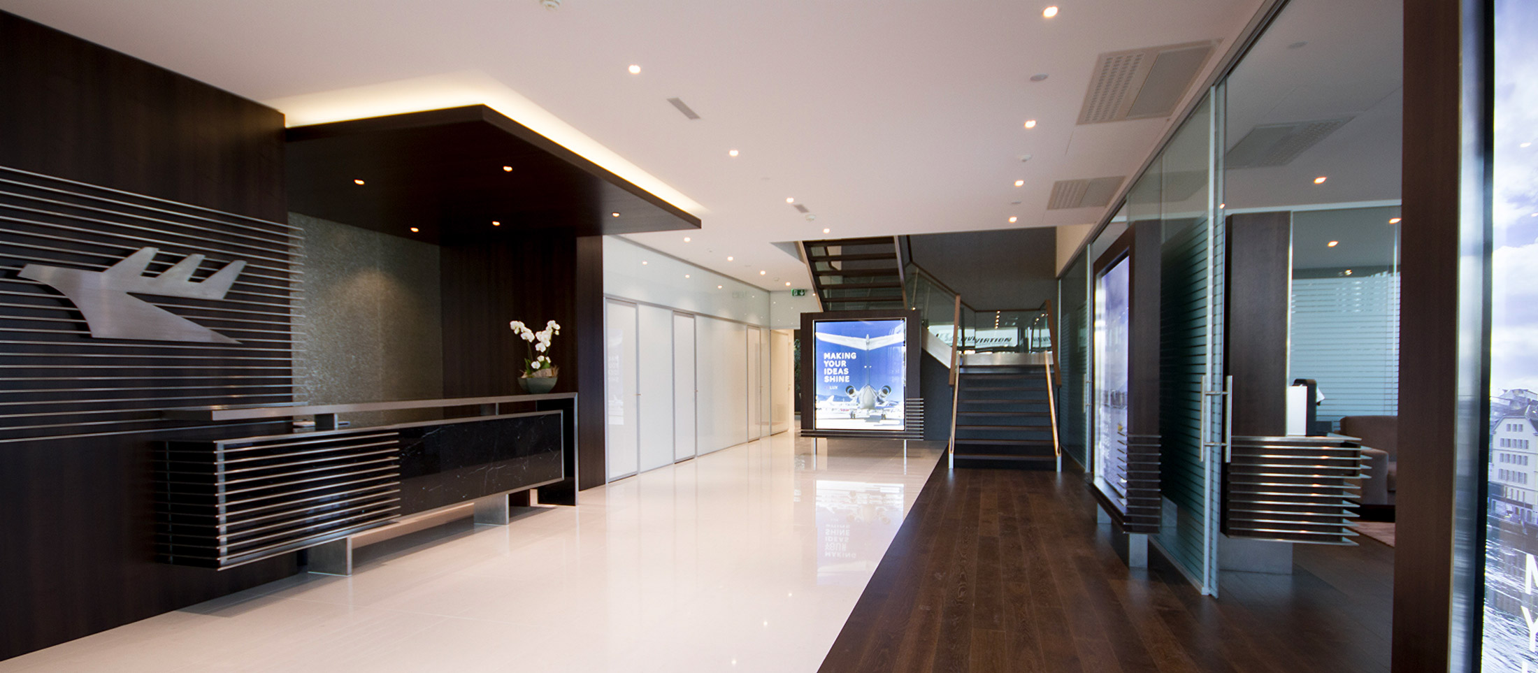 Cette réalisation effectuée en association avec le bureau d’architectes SAA basé en Californie représente le premier projet de la nouvelle "corporate image" de Jet Aviation à travers le monde.